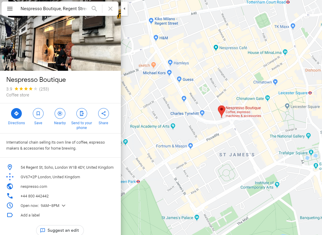 네스프레소 부띠끄에 다녀왔습니다. Regent Street에 있는 매장이, 바로 옆에 피카델리서커스가 있습니다. 한국에서 백화점에 갈때마다 네스프레소에 꼭 방문해보는 편인데, 영국에 갔는데 방문을 안할 수가 없지요. 제가 방문한 매장의 위치는 아래와 같습니다.