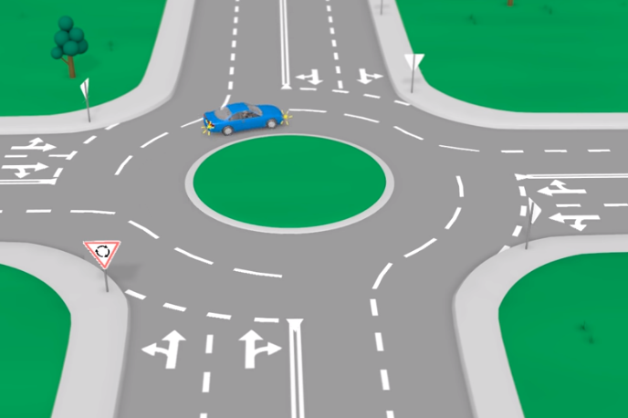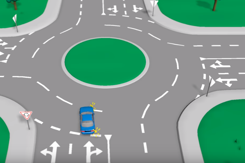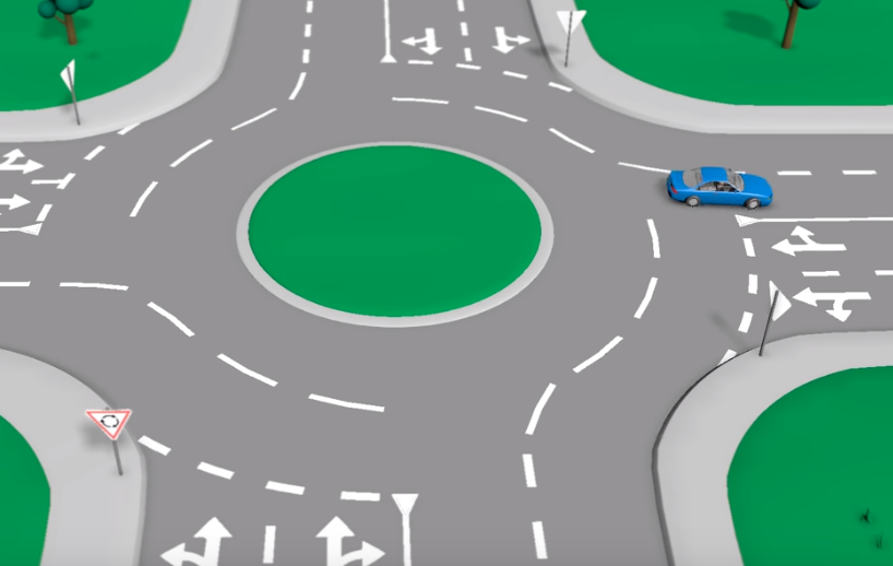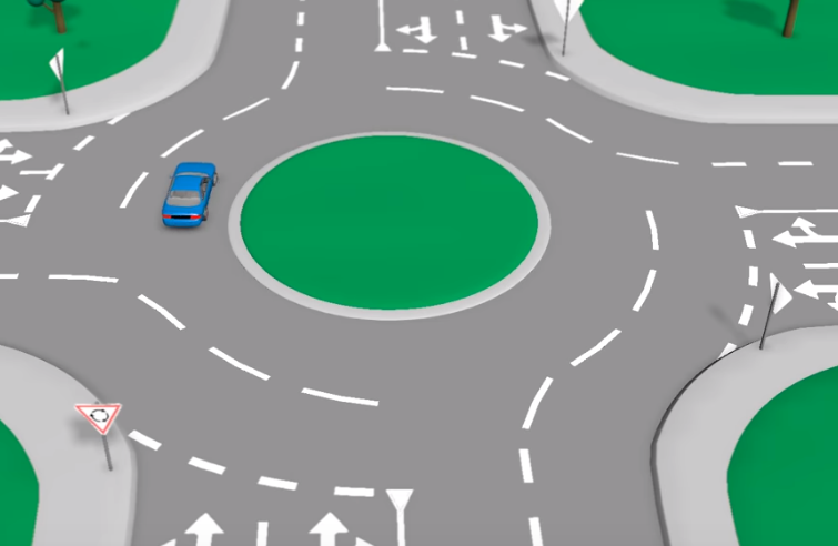 라운드어바웃에 들어가기전에 속도를 줄이셔야 합니다. 그리고 이미 라운드어바웃에 진입해온 차가 없는지 살펴보아야 합니다. 이유는 라운드어바웃에 진입해 있는 차가 무조건 우선권을 가집니다. 무리하게 진입하다가 사고가 나면 진입하는 차량 잘못이니, 절대 속도를 감소하여야 하고, 이미 돌고있는 차가 있으면 양보하셔야 합니다.
