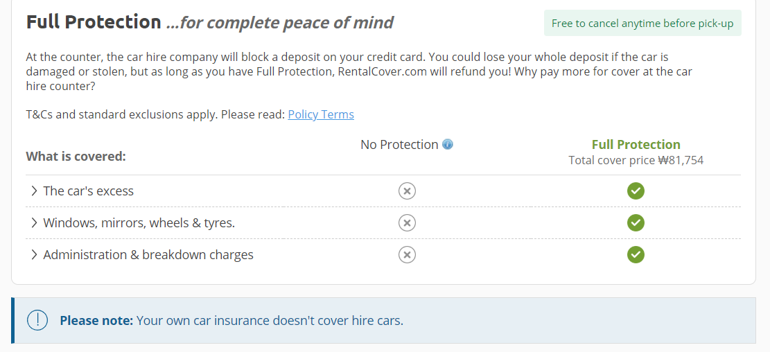 난 처음에 Full protection가입하면 아예 내가 돈을 안내는건줄 알았다. 근데 그게 아니라 일단 내고 (디파짓에서 까이고) 나중에 Claim을 해야되는거라, 좀 귀찮다. Claim하는 방법도 다음글에 올리겠다. 어렵지는 않은데 귀찮다.