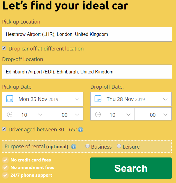 그러다가 이럴거면 렌트를 해볼까 하고 https://www.rentalcars.com/에 들어가 보았다. 런던 어디서나 빌릴수 있지만, 숙소가 Heathrow 공항 근처여서 거기를 선택했다. 아무래도 업체도 많고 차도 많고 선택의 폭이 넓다.